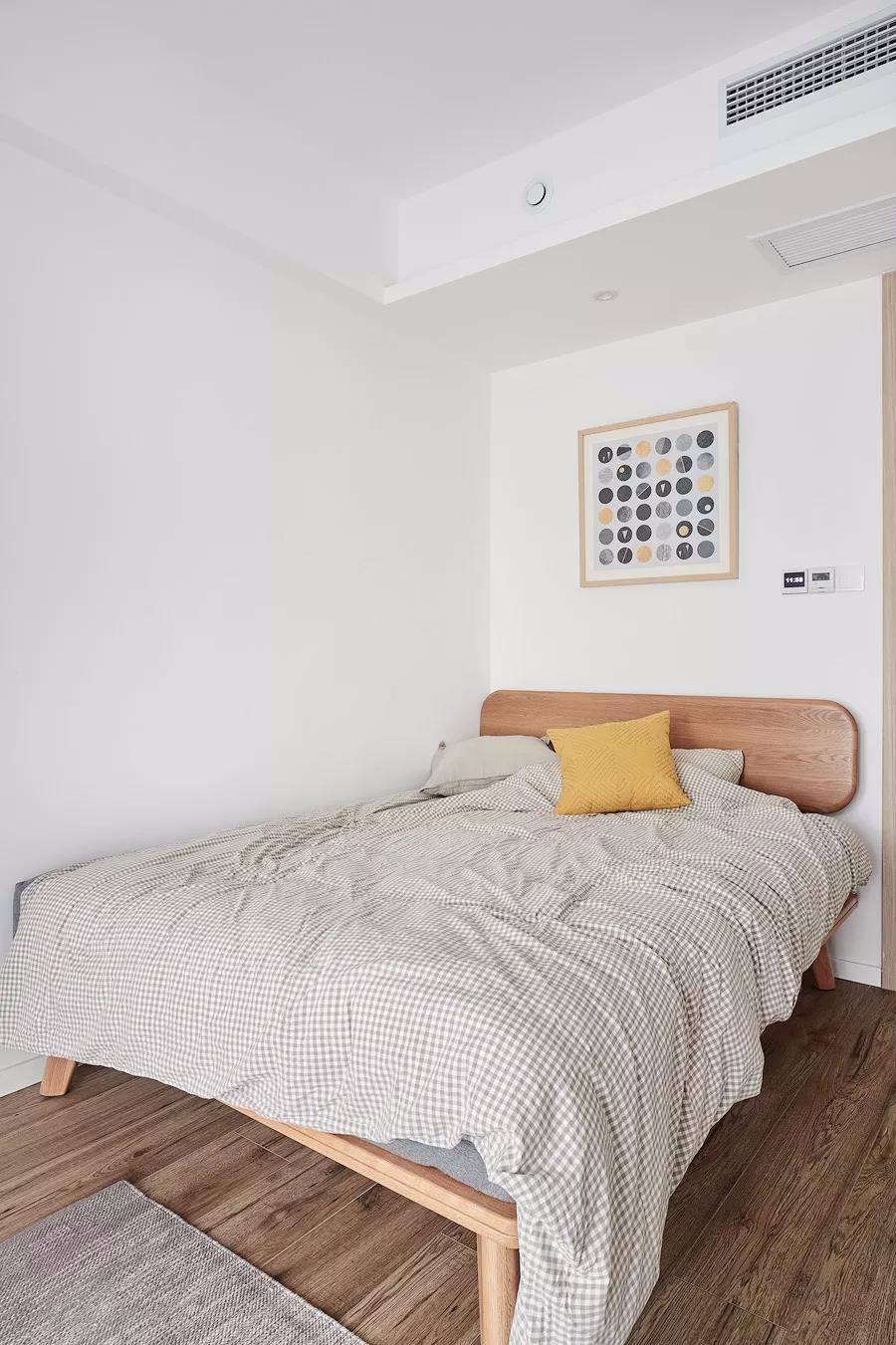 有2個臥室,還有1個小書房,布局真的很不錯。整個家大量搭配了原木家具,清新又自然,文藝又有格調,好喜歡這種休閑又放松的家居氛圍。很多人問我客廳刷什么顏色的乳膠漆好,我覺得淺灰色不錯,客廳采光特別的給力,好喜歡休閑飄窗的設計,視野十分開闊,看書休憩都特別的舒服。淺灰色調不會顯得過于沉穩,在布藝中加些暖色,會更顯休閑溫馨感。軟裝搭配細節放大看一看,哈哈,質感真的不錯,黃色抱枕真的超愛了!搭配個小邊幾,擺上綠植,清新又養眼,裝修的時候墻面別忘了預留插頭,平時充電會更方便些.主臥的采光也特別棒,整個空間氛圍清新又自然。很喜歡床頭木質護墻板的設計,和臥床、床頭柜融為一體,十分的協調。廚房雖然面積不大,但也打造出U型布局,動線合理,操作方便。很喜歡這種時尚中融入清新色調的搭配了。冰箱也有了歸屬感!