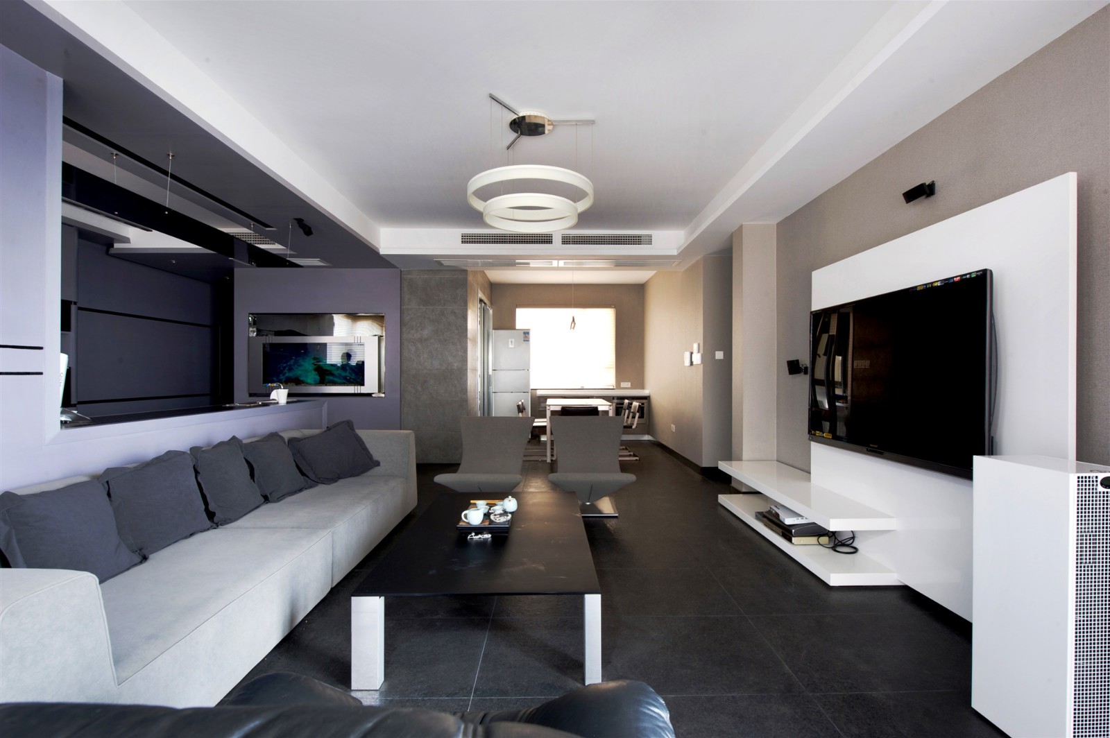 客廳以黑白灰的融合為格調(diào)
